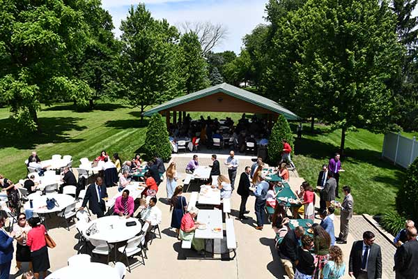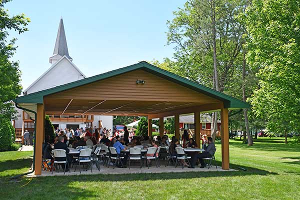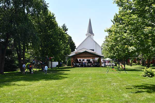 A play area for children behind the church is used for special activities with a nearby pavilion for parents.
